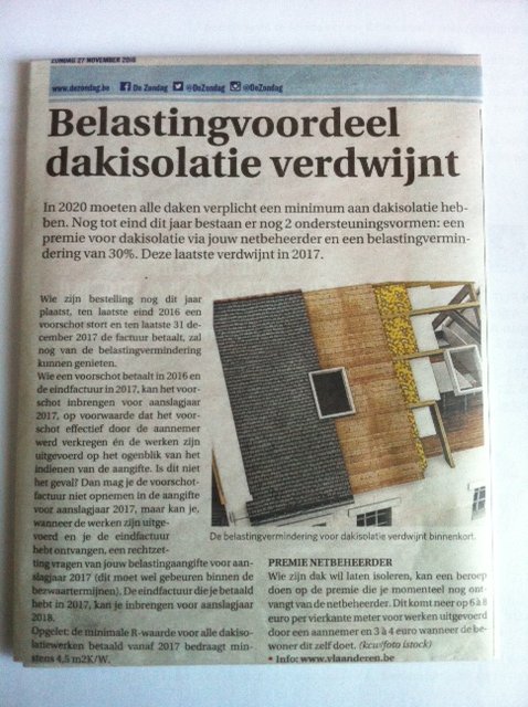 Voor alle zelfstandige woningen (= studio, eengezinswoning of appartement) is de nieuwe Vlaamse dakisolatienorm in werking getreden op 1 januari 2015. De regeling geldt niet voor kamers.