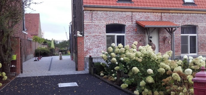 Renovatiewerken bestaande uit gevel- en dakwerken, heraanleg terras en oprit.